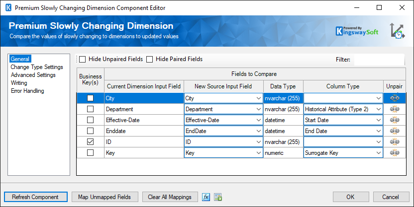 Please change the Key type from Not a Key Column to Business key. Most Kimball readers are familiar with the core SCD approaches. In Type 2 Slowly Changing Dimension a new record is added to the table to represent the new information.
